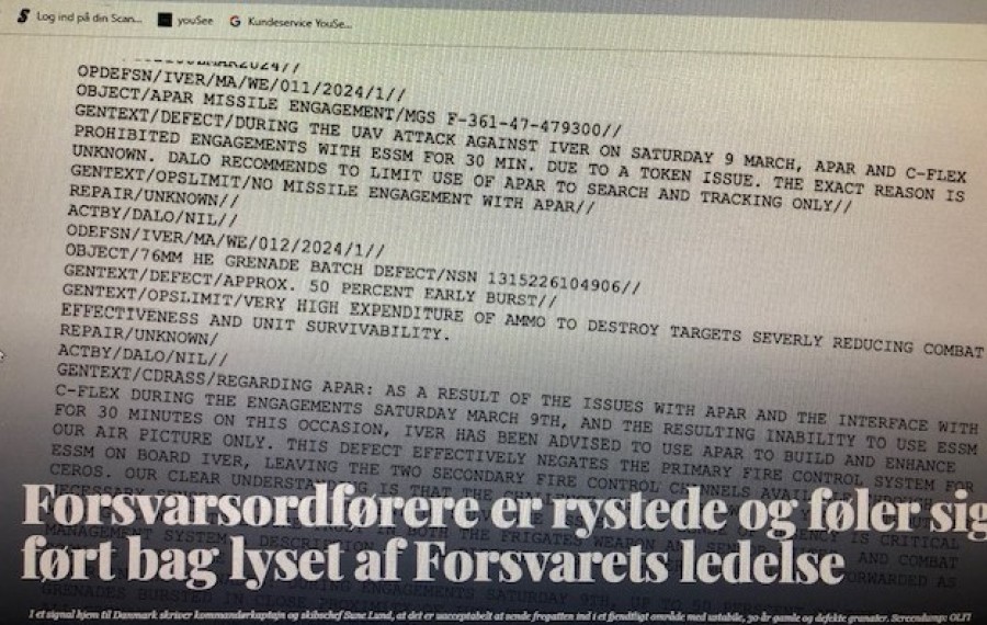 Dansk fregat sendt ind i fjendtligt område med fejlramt radar og defekt ammunition